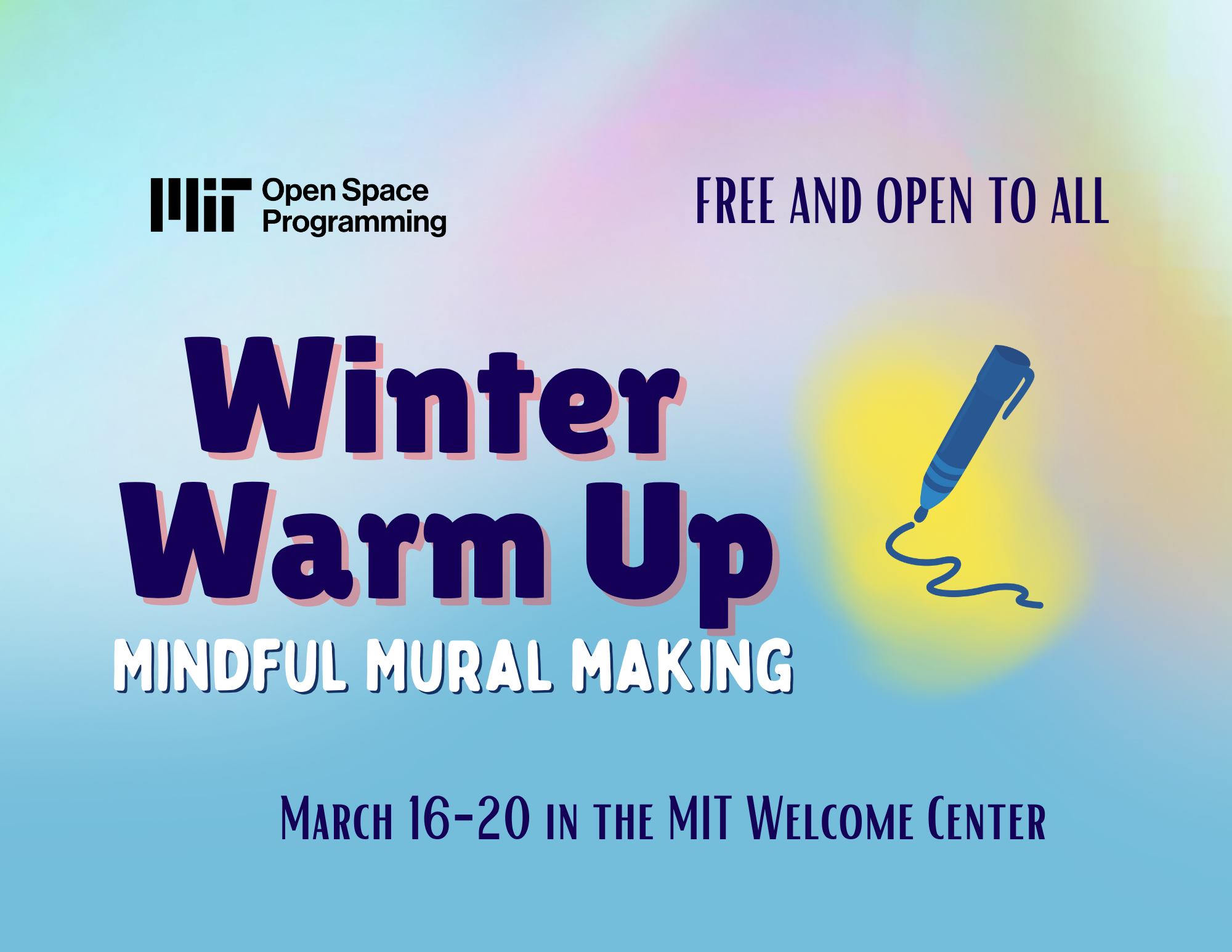 Winter Warm Up: Mindful Mural Making Mar 17 Winter Warm Up: Mindful Mural Making March 16, 2026 @ 9:30 am - March 20, 2026 @ 4:00 pm EDT Free